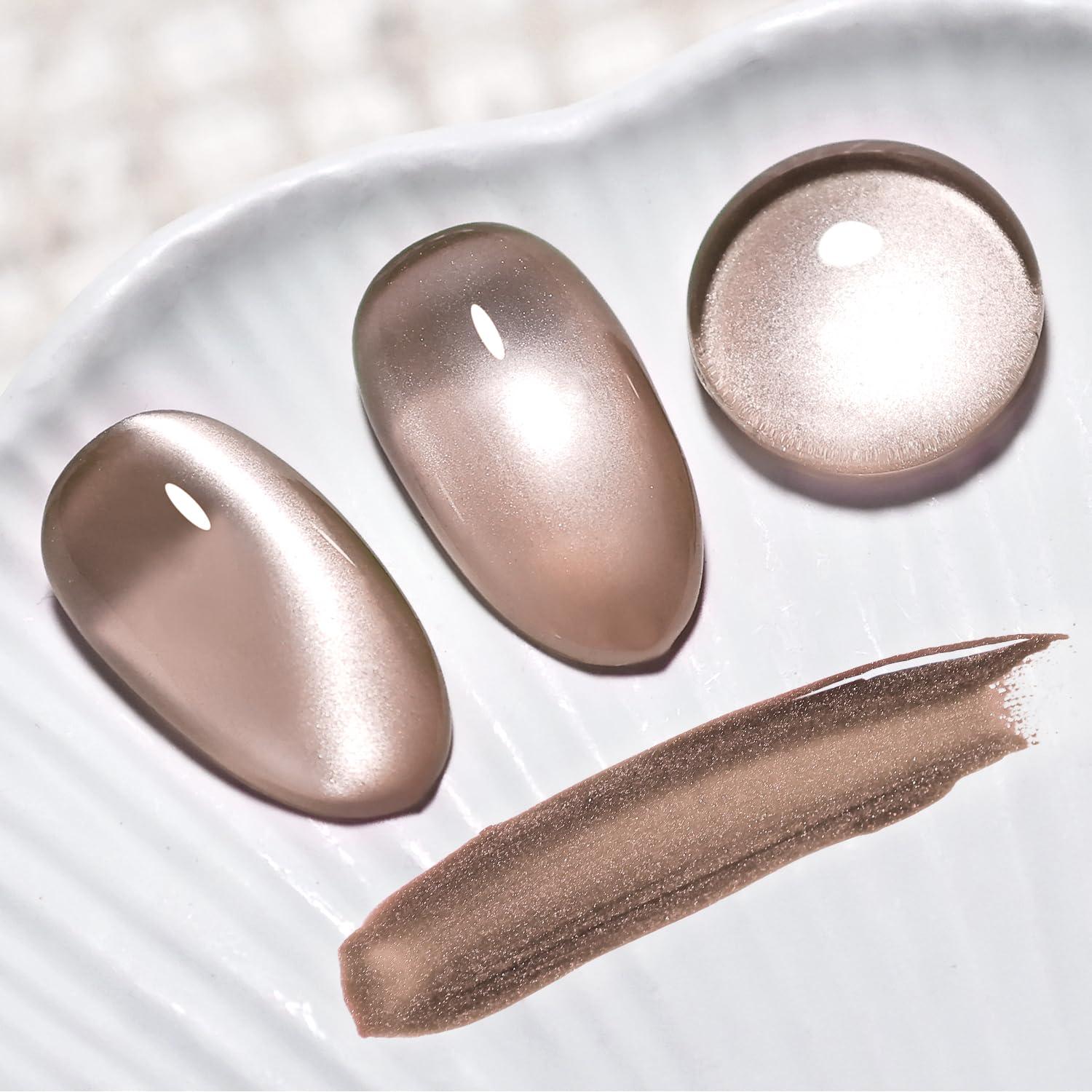imageJODSONE 10ml Cat Eye Gel Nail Polish Set Pink Brown Collection 6 Colors for Holographic Glitter Cat Eye with Magnet at Home Salon Design Gift for Girls2476FLight Brown1