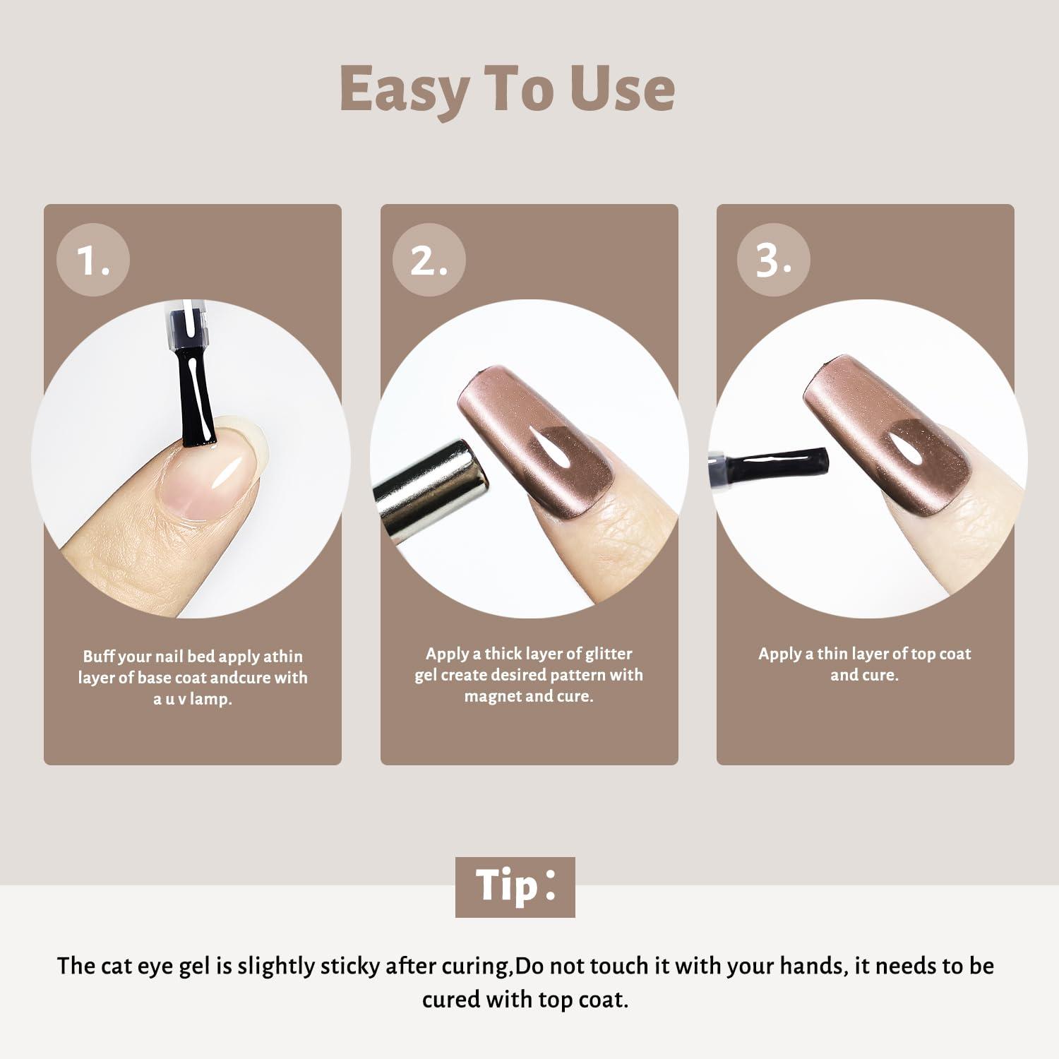 You’ll Received:6Pcs Jelly Cat Eye Gel Nail Polish Set Pink Brown Set.With the built-in Magnet, you can use the magnet to create desired pattern before curing.It creates a gorgeous momentum for your nails.