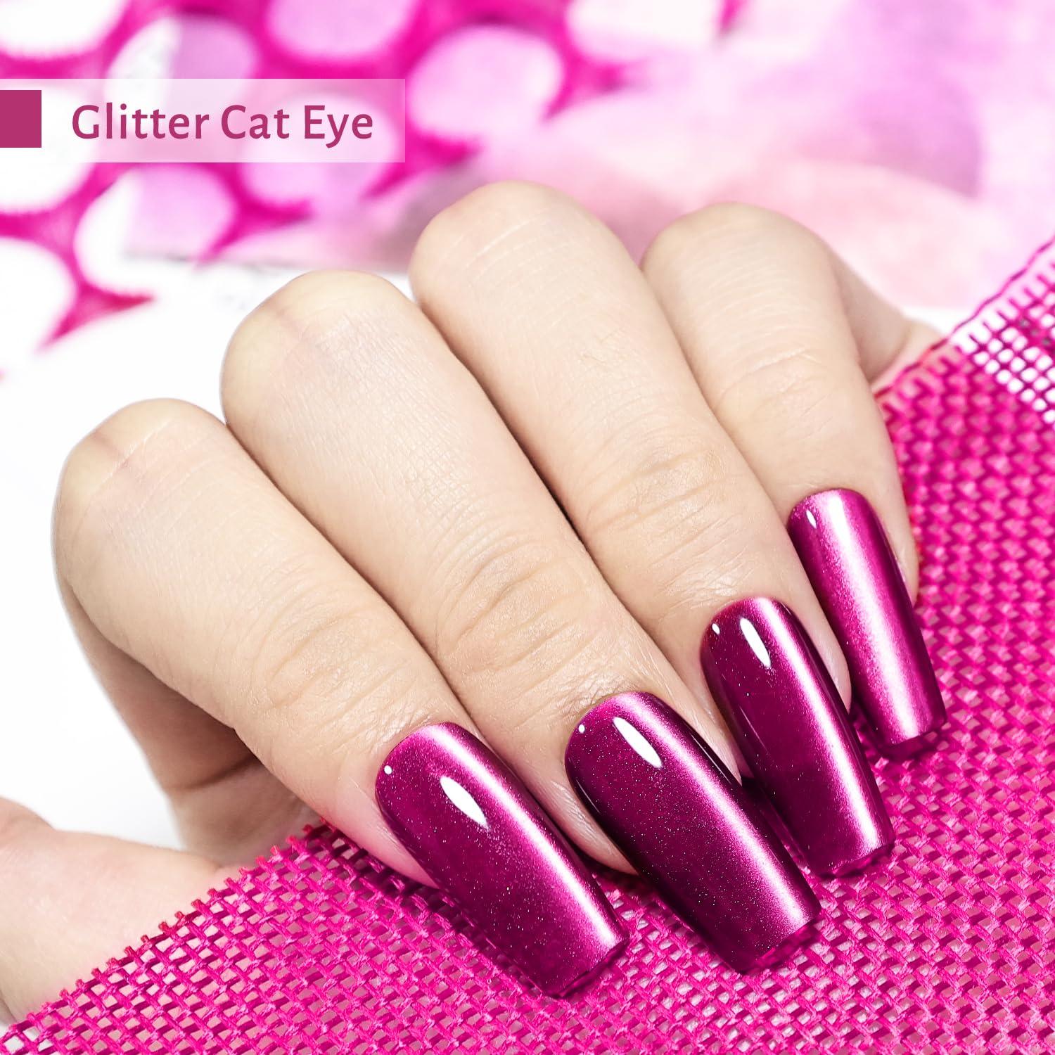 JODSONE 10ml Cat Eye Gel Nail Polish Set Pink Brown Collection 6 Colors for Holographic Glitter Cat Eye with Magnet at Home Salon Design Gift for Girls(2716F-Claret)