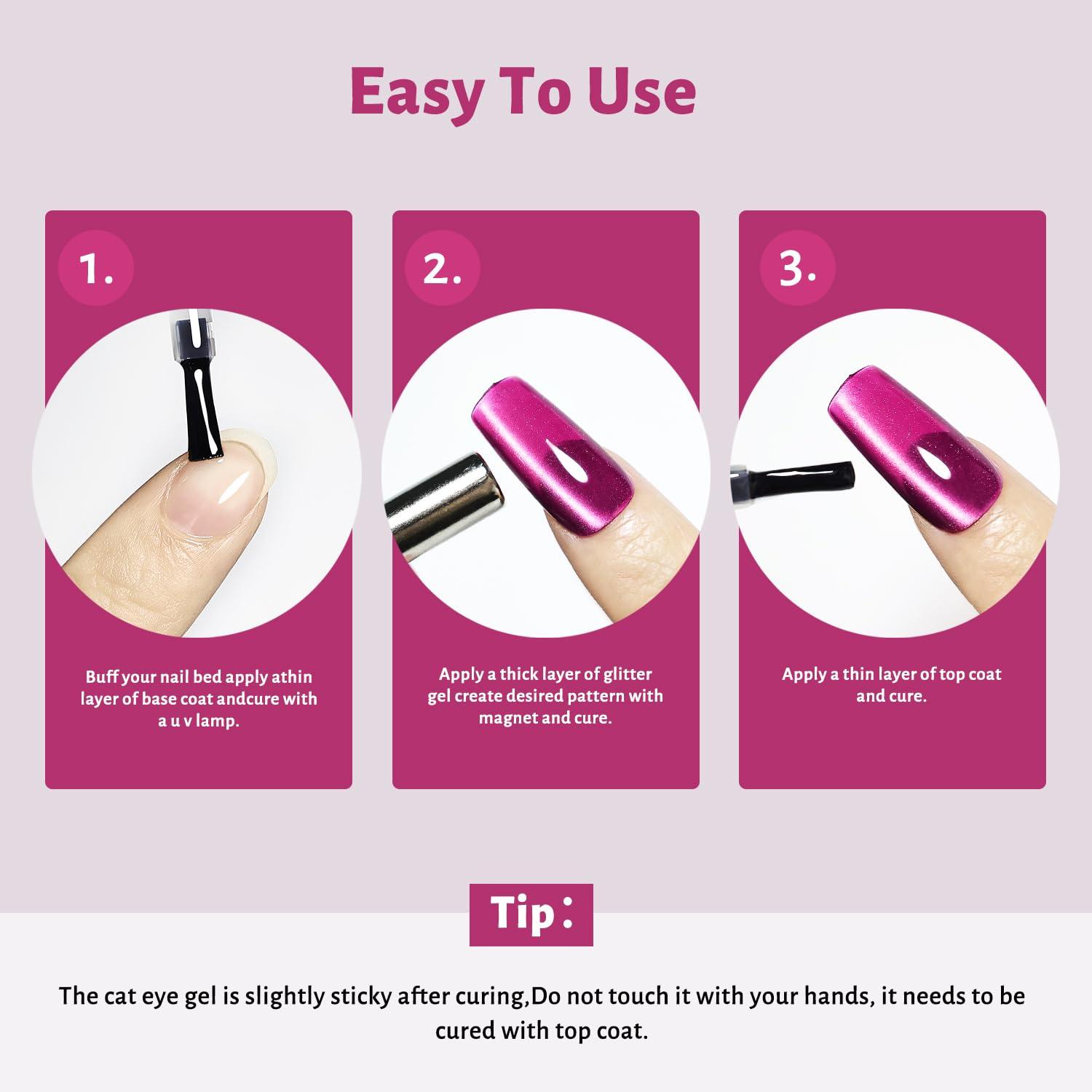 You’ll Received:6Pcs Jelly Cat Eye Gel Nail Polish Set Pink Brown Set.With the built-in Magnet, you can use the magnet to create desired pattern before curing.It creates a gorgeous momentum for your nails.