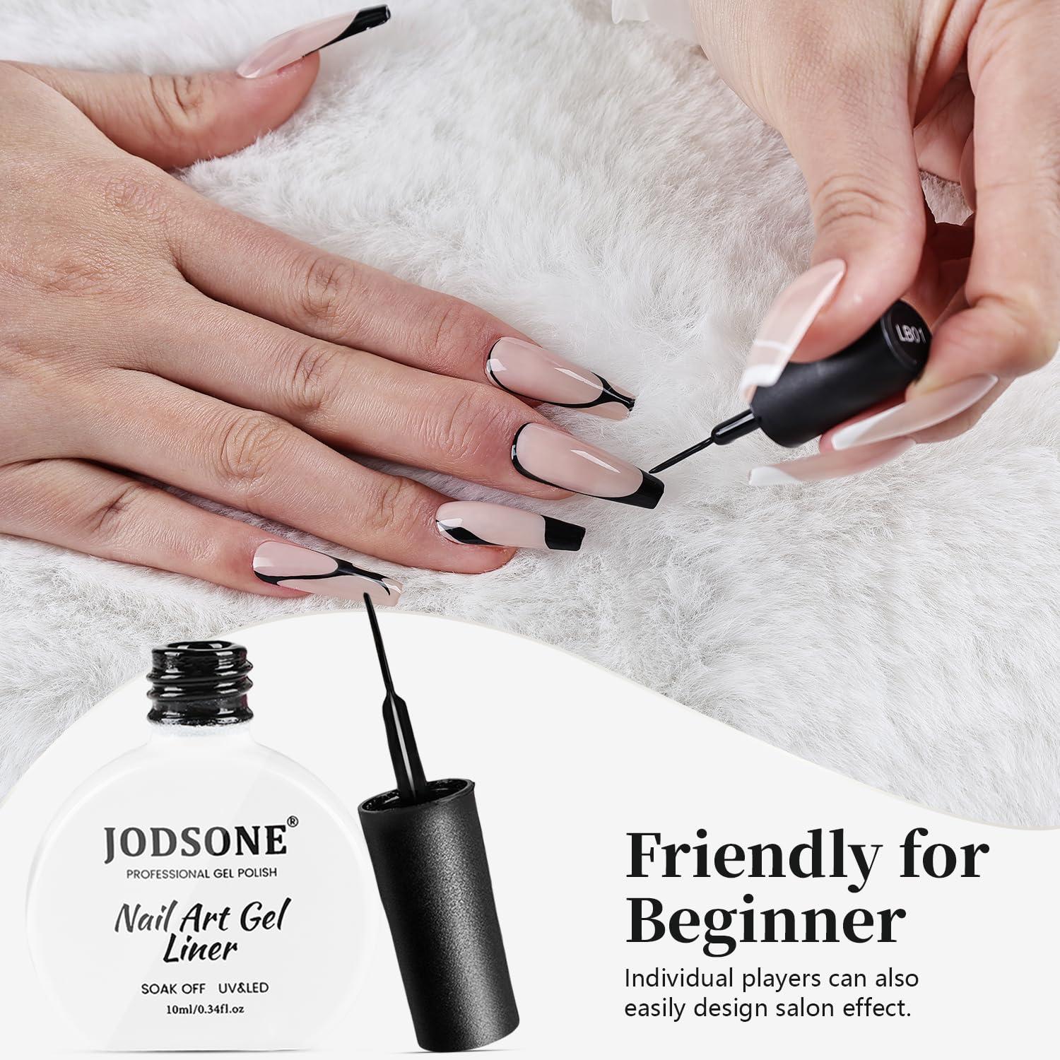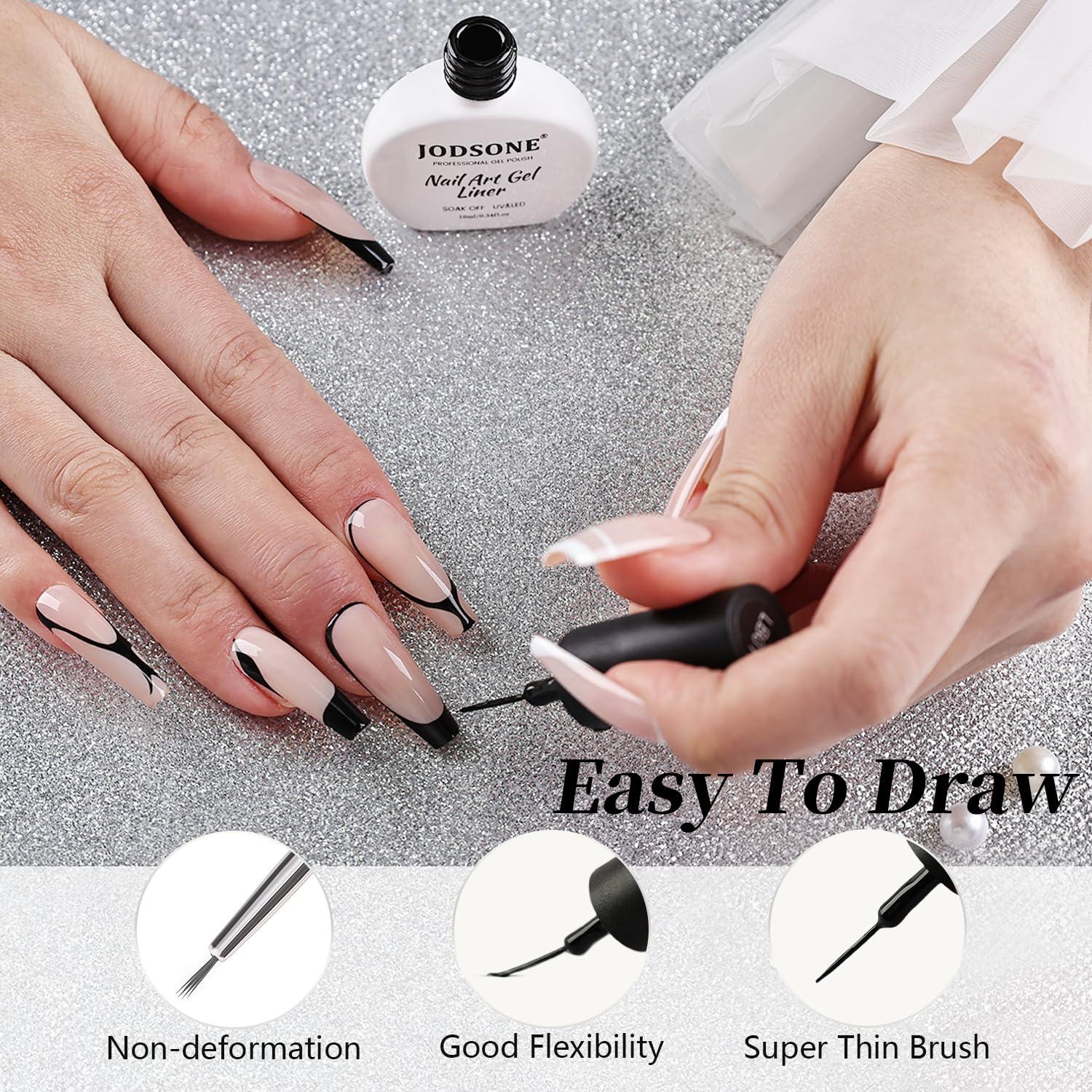 imageJODSONE 2pcs Metallic Nail Art Gel Liner Gold Mirror Chrome and Silvery 3D Effect Gel Nail Polish Thin Brush Metal Painted DIY at Home Salon Quality Gift for WomenLB01Black