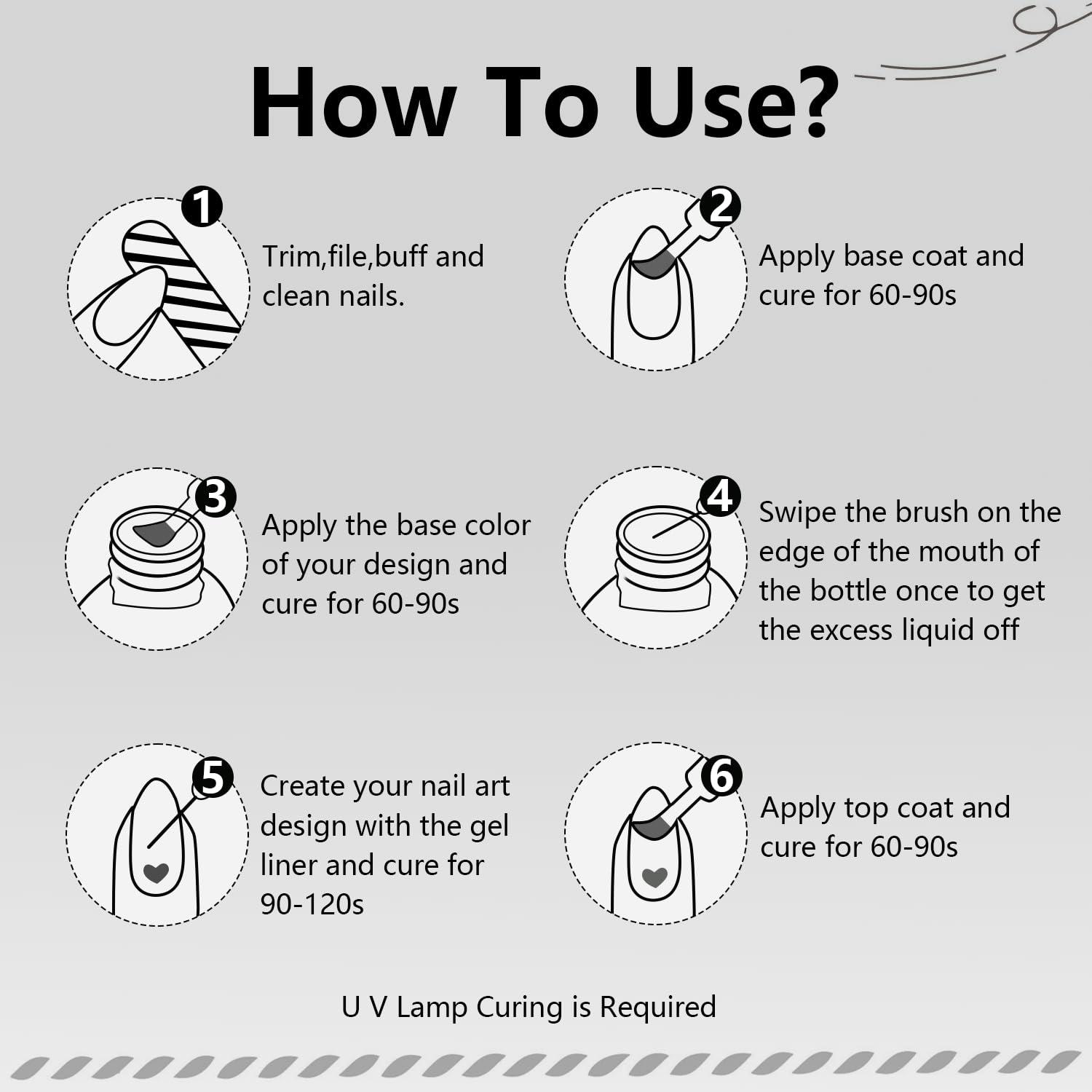 Fast Lasting Colouring: Nail Art Gel Base Coat Set Brush is simple, easy and fast to operate with long lasting results, LED nail lamps have an average curing time of 60-120 seconds and require a base coat and top coat.