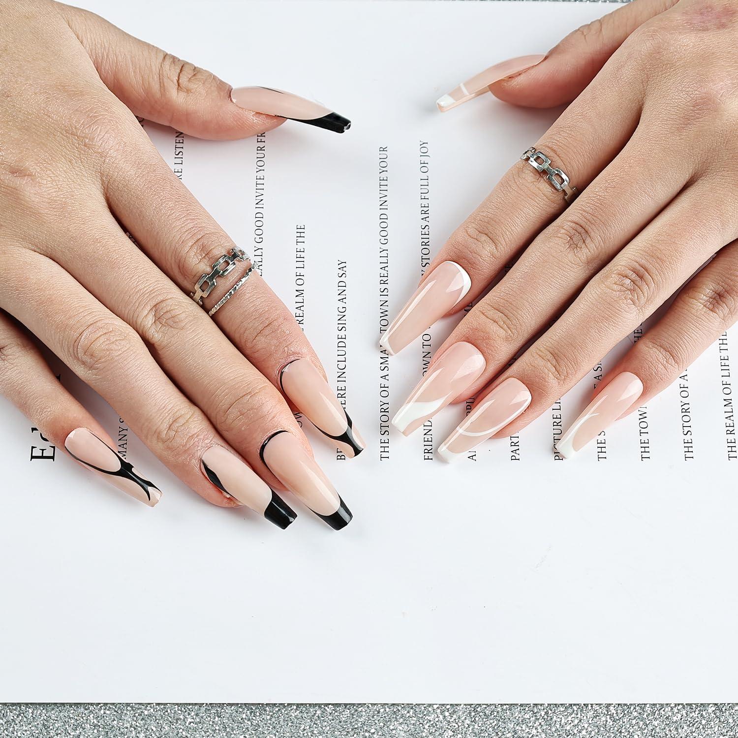 JODSONE 2pcs Metallic Nail Art Gel Liner Gold Mirror Chrome and Silvery 3D Effect Gel Nail Polish Thin Brush Metal Painted DIY at Home Salon Quality Gift for Women(LB01-LB02-Black and White)