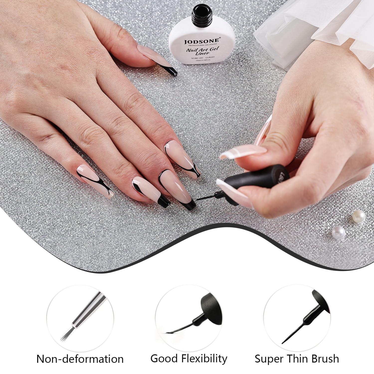 imageJODSONE 2pcs Metallic Nail Art Gel Liner Gold Mirror Chrome and Silvery 3D Effect Gel Nail Polish Thin Brush Metal Painted DIY at Home Salon Quality Gift for WomenLB01Black