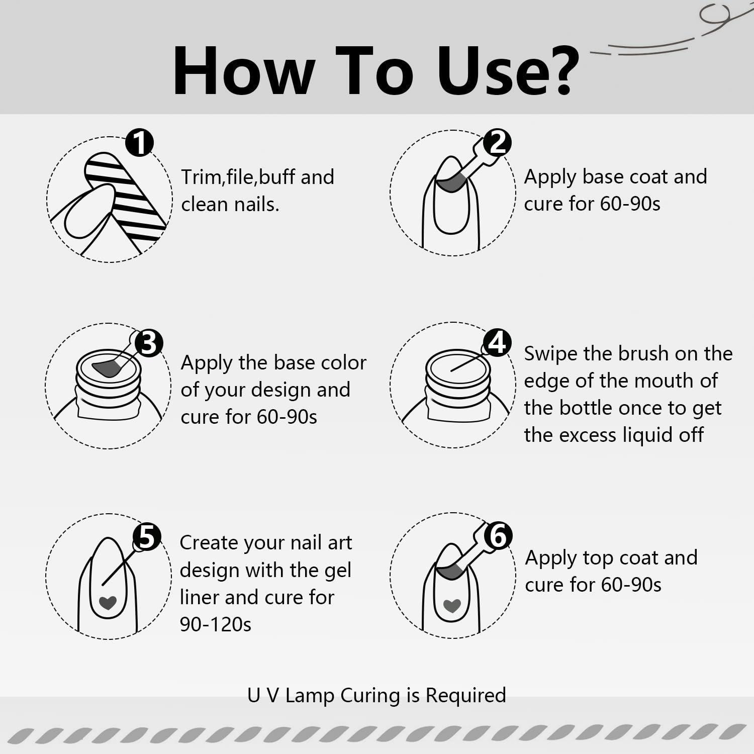 You‘ll Get:2pcs Nail Art Gel Liner Paint Set ,including Mirror Gold and Silver.With the built-in thin brush, you don't have to get out your set of brushes for adding details and lines. of nail manicure decoration, especially for nail art manicures. It not only creates a gorgeous momentum for your nails.