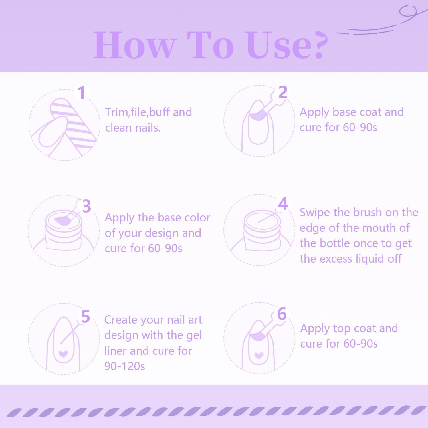You’ll Received:10Pcs Nail Art Gel Liner Paint Set.With the built-in thin brush, you don't have to get out your set of brushes for adding details and lines. of nail manicure decoration, especially for nail art manicures. It not only creates a gorgeous momentum for your nails.