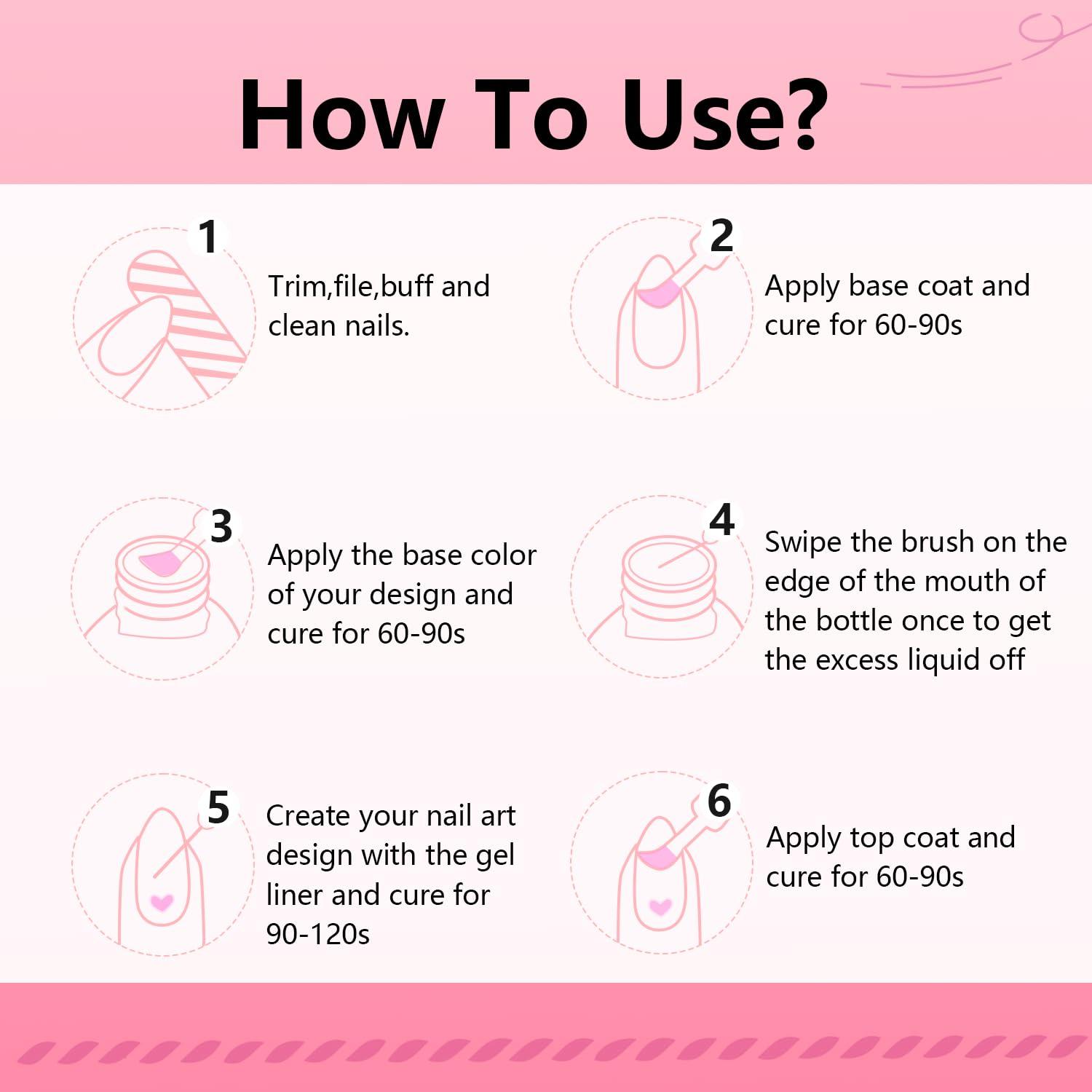 You’ll Received:10Pcs Nail Art Gel Liner Paint Set.With the built-in thin brush, you don't have to get out your set of brushes for adding details and lines. of nail manicure decoration, especially for nail art manicures. It not only creates a gorgeous momentum for your nails.