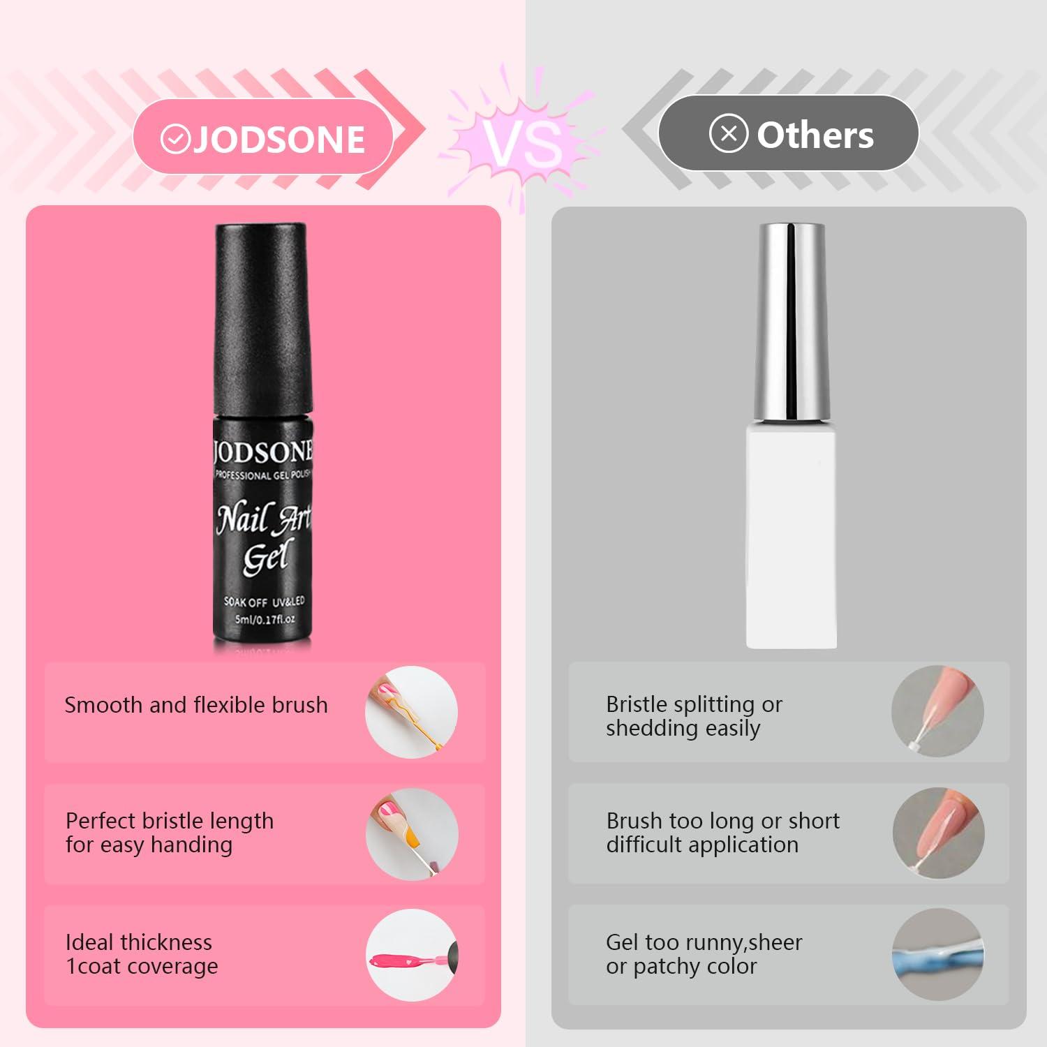 imageJODSONE Art Gel Liner Set 10 Colors Black Red Blue Need U V Lamp Cured with Thin Brush Gift for Girls at Home Salon DesignLB01LB32
