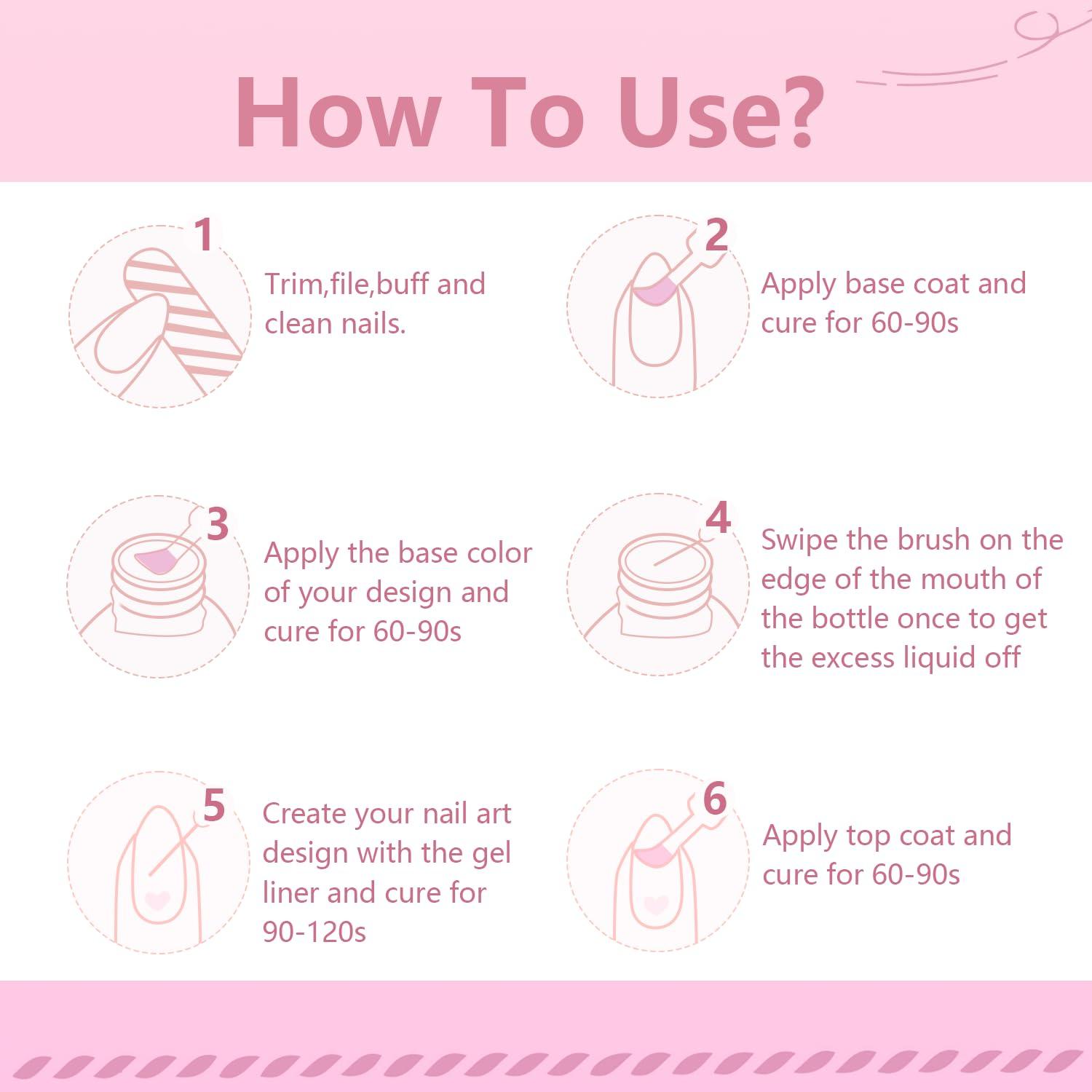 You’ll Received:10Pcs Nail Art Gel Liner Paint Set.With the built-in thin brush, you don't have to get out your set of brushes for adding details and lines. of nail manicure decoration, especially for nail art manicures. It not only creates a gorgeous momentum for your nails.
