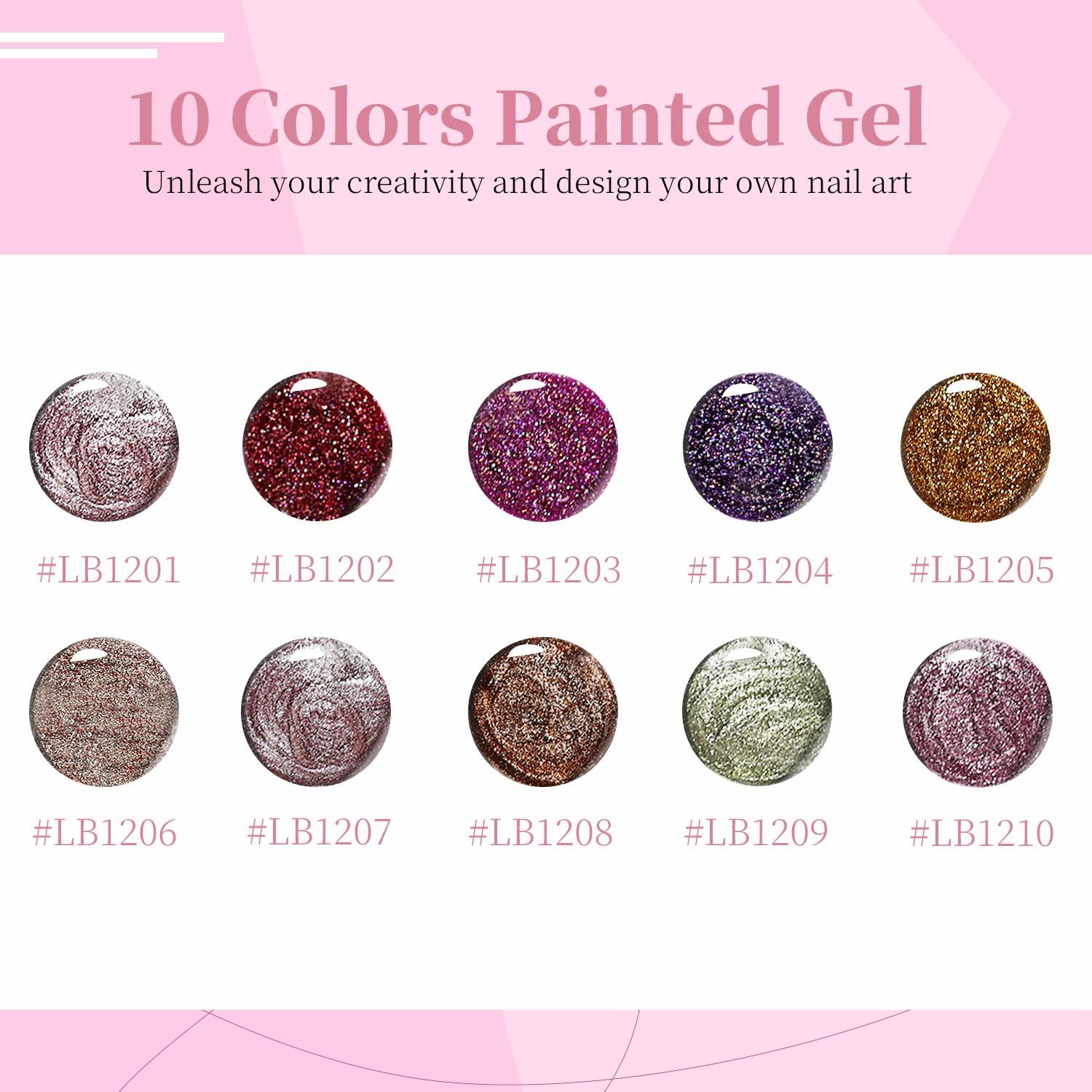 Premium Quality Nail Art Line Gel:The set contains 10 vibrant and dreamy gel pigments, made of high quality and safe ingredients with mild scent to create a personalized nail art experience.