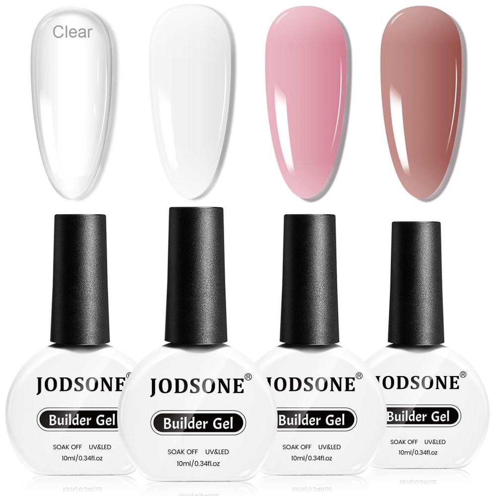 JODSONE Builder Gel for Nails,10ml 4Pcs Builder Gel Set Jelly Pink Nude White,for Nail Extension Strengthening & Thickening Solution,Long Lasting U V Light Cure(GJ01-GJ04)