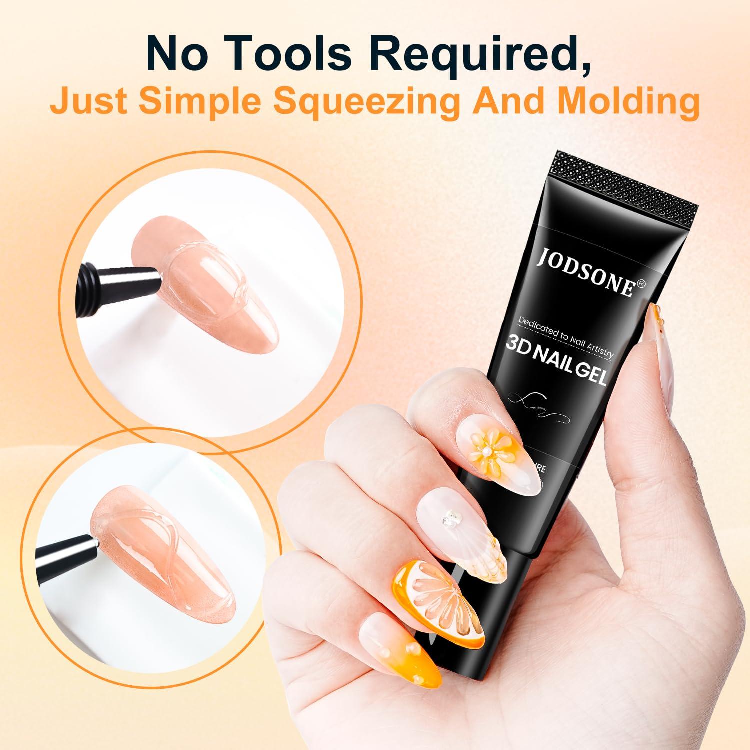JODSONE Clear 3D Gel Nail Art – 15g No Wipe Crystal Clear Sculpting Gel for DIY 3D Nail Art Design, Texture Molding & Rhinestone Decoration(30g)