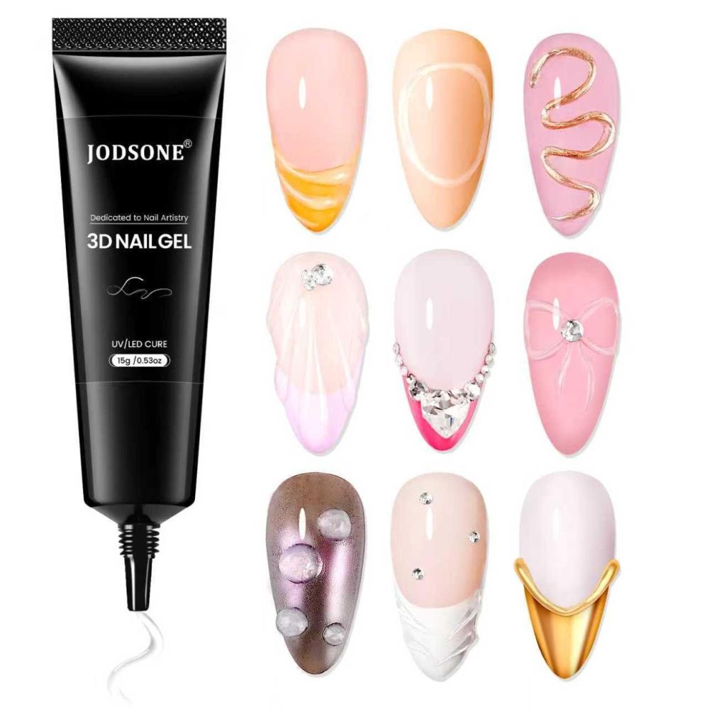 JODSONE Clear 3D Gel Nail Art - 15g No Wipe Crystal Clear Sculpting Gel for DIY 3D Nail Art Design, Texture Molding & Rhinestone Decoration(15g)