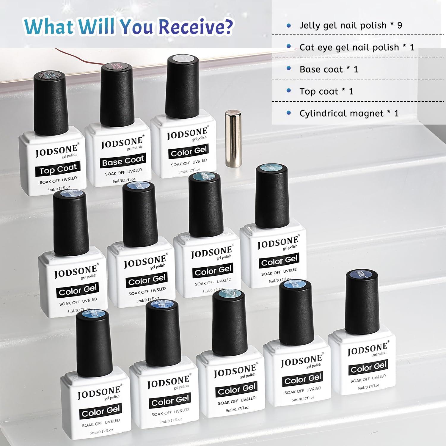 JODSONE Gel Nail Polish Starter Set 100 Pieces Multi-color Gel Nail Polish Nail Salon Home Use In Shine(10SET-Jelly-Blue)