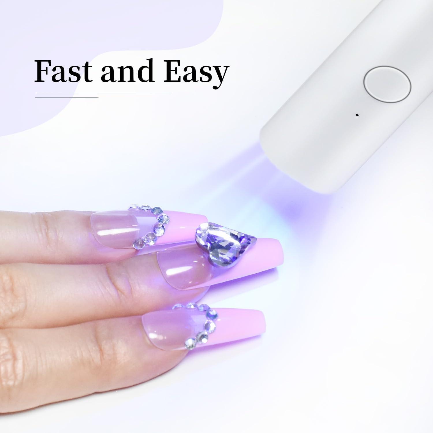 JODSONE Handheld Small U V Nail Lamp with Magnet and LCD Display Rechargeable Portable Mini Nail Lamp for Home DIY Manicure Pink(Light White)