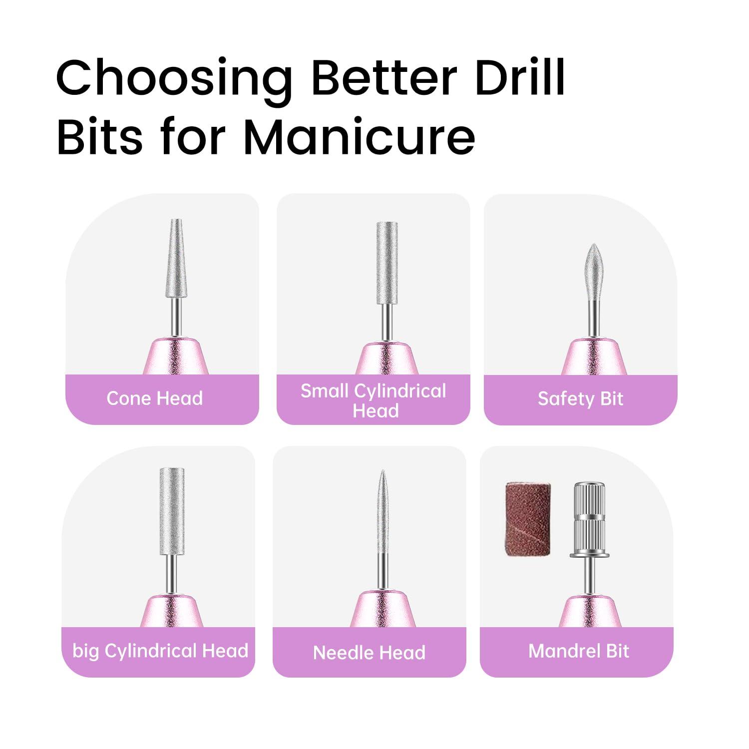 About the Product: This electric nail drill, with delicate and lightweight design, is easy to carry, equipped with 6 professional replacement drills, which can remove all kinds of gel nail removal according to your personal needs.