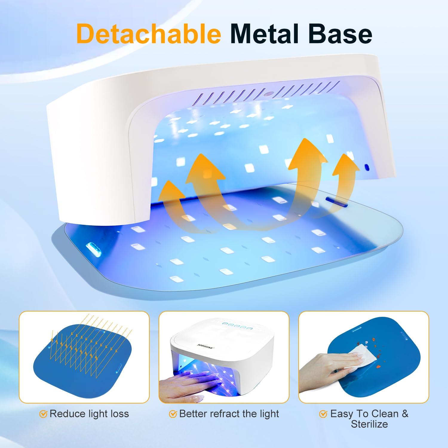 About Nail Lamp Design: This nail lamp is designed with a large LCD digital display, the timing numbers can be flipped to show, it is convenient for nail technicians to choose the perspective to view the countdown, while the spacious design and removable magnetic base are easy to use and easy to clean.