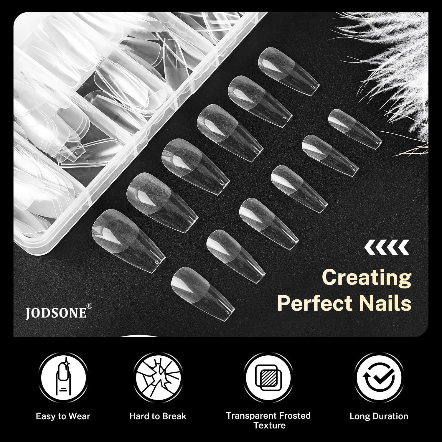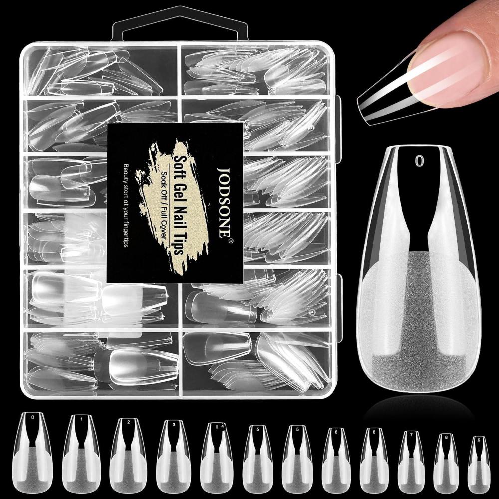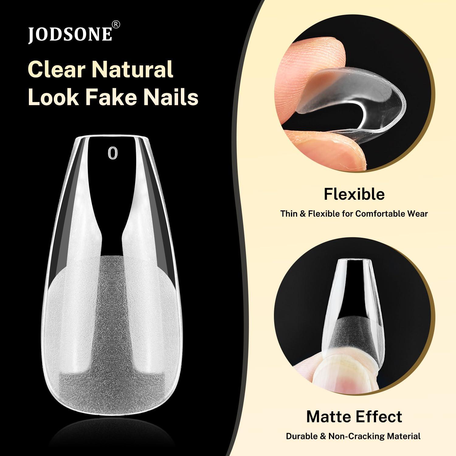 imageJODSONE Short Orbicular Half Matte Pre shaped Soft Gel Tips Fake Nails False Acrylic Clear Full Cover Press on Extension Gel Kit Manicure DIY at Home 240PCS 10SizesSquare